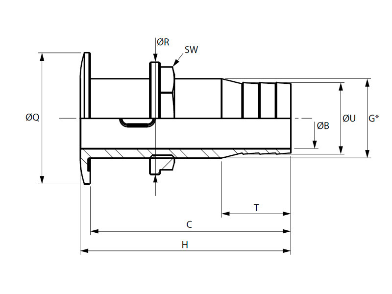 Vetus RST runkoläåivienti G1 1/4” letkuliittimellä Ø 38 mm. Materiaali ruostumaton