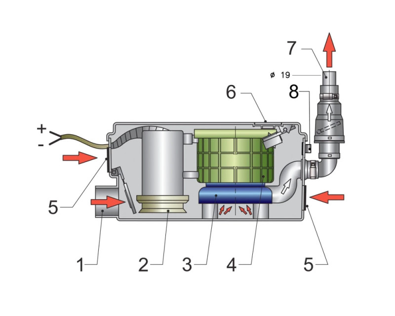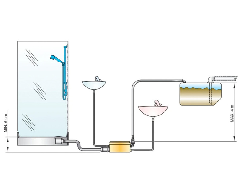 Veneen suihku- ja saunatilojen ”harmaata” vettä on usein hankala saada painovoimaisesti siirtymään jätevesitankkiin. GWDS:ssä on vesitiivis runko johon on integroitu uimurikytkimellä varustettu pumppu sekä takaiskuventtiili. Laitteessa on hiljainen käyntiääni.