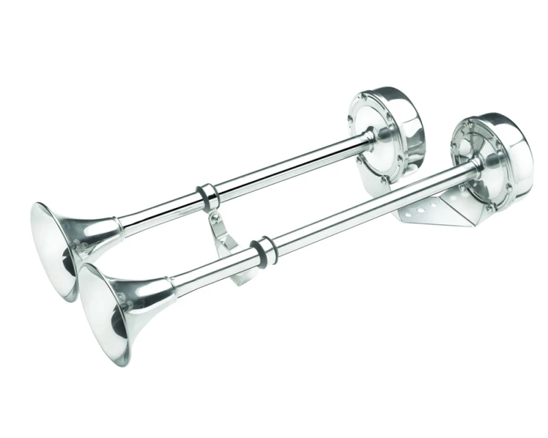 Fri elektrisk H12D mistlur, kombinationshorn, tvåhorn; lågt och högt ljud. Spänning 12 V, material rostfritt stål.