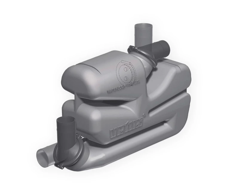 Vetus LSG60 vattenlås för Ø 60 mm spillvattenrör, kapacitet 17 liter. Används särskilt för långa rör där det krävs ett vattenlås med stor kapacitet.